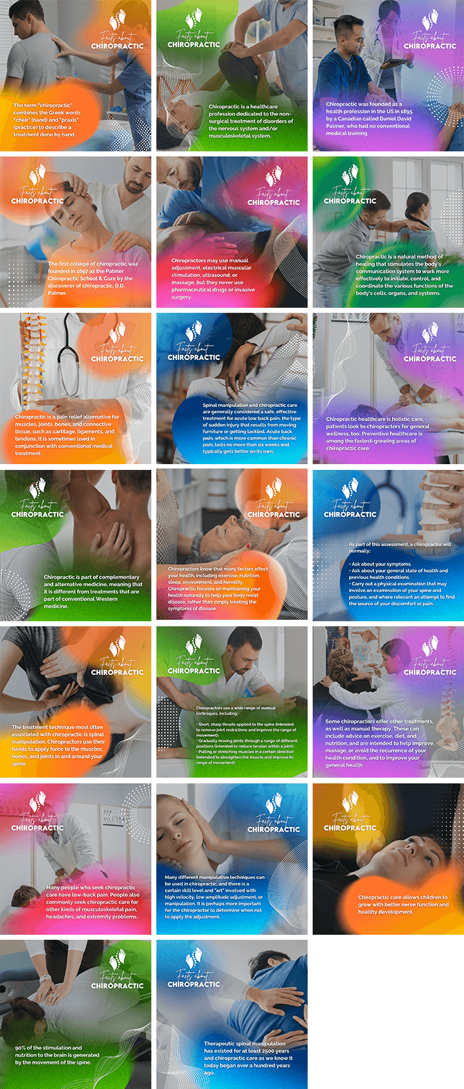 The Chiropractic Facts bundle includes 20 beautiful pieces of visual content: