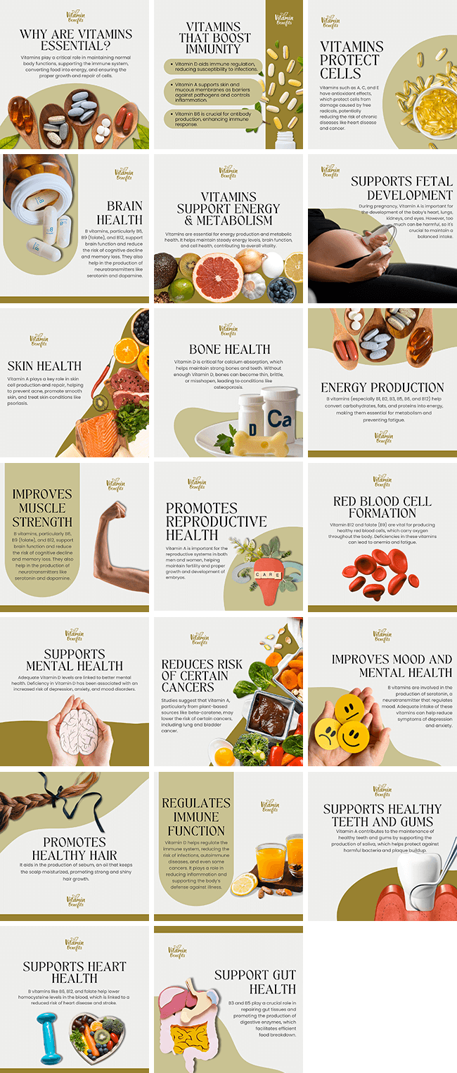 The Vitamin Benefits bundle includes 20 beautiful pieces of visual content: